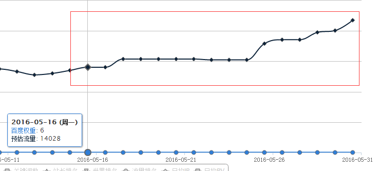 如果網(wǎng)站存在大量的死鏈,并且沒有做404,那么網(wǎng)站的流量是會呈現(xiàn)下滑的趨勢的。這點可以從我的網(wǎng)站清晰的判斷出來,我在5.16開始著手網(wǎng)站死鏈的處理,主要是設(shè)置404頁面和提交死鏈并設(shè)置404狀態(tài)碼,隨后的兩周流量慢慢開始上升: