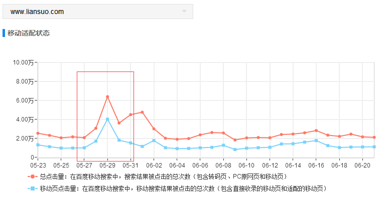移動流量至少占據(jù)網(wǎng)站一半的流量,如果移動端和PC的適配不穩(wěn)定,長期下去就會造成移動端的流量下降,所以我們今后在查看數(shù)據(jù)的時候,也要將移動適配度放入考察中,具體可以去百度站長工具查看適配程度。